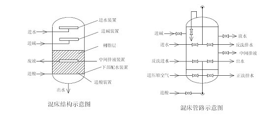 H+,OH-隨即合成H2O,交換反應(yīng)進(jìn)行得很徹底,因而混合床的出水水質(zhì)優(yōu)于雙床式純水機(jī)多臺(tái)串聯(lián)所能達(dá)到