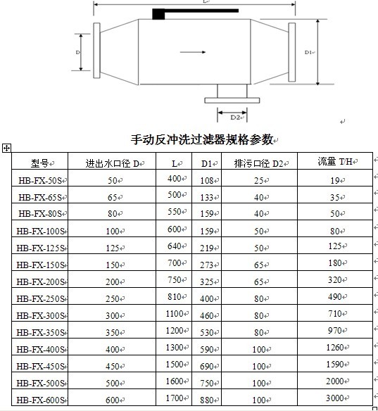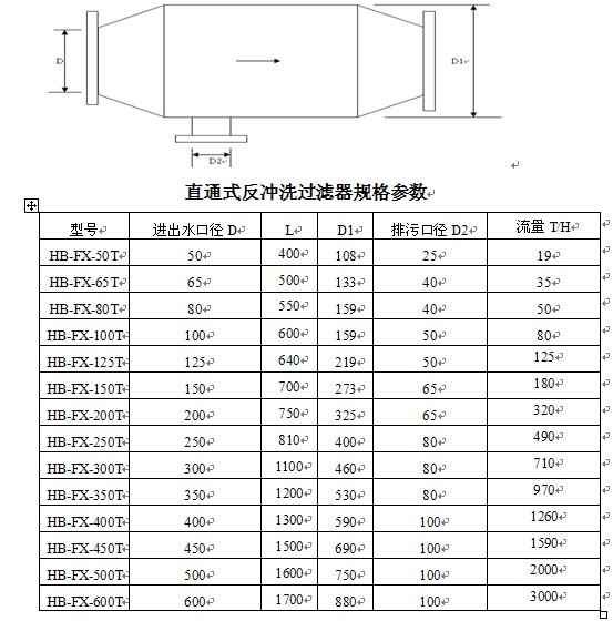 HB-FX反沖洗過濾器主要由優質碳鋼通體、特殊結構的不銹鋼濾網、蝶閥及排污裝置所組成。當過濾器工作時,蝶閥處于開啟狀態,水流由入口進入過濾器,經過濾網過濾流出系統。當過濾器需要排污時,關閉蝶閥,打開排污閥,水流以濾網前半段過濾,部分水流由出口流入系統,剩余水流由濾網后半段外側流入內側,經排污口排出,起到反沖洗過濾器的作用。